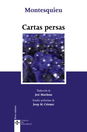 Obra de juventud, publicada por primera vez en 1721, las Cartas persas conocieron en su época un gran éxito de público y se convirtieron en obra maestra de un género con muchos imitadores. Mediante un punto de vista exótico -el de un persa que viaja por Europa-, Montesquieu desarrolla una observación sin prejuicios que le permite descubrir en la sociedad de su tiempo lo arbitrario y lo que sólo se sostiene en la costumbre irreflexiva cubierta por un aura de sacralización. Aun siendo en ciertos aspectos un preludio de su obra mayor, Del espíritu de las leyes, en el presente texto el autor muestra un amplio relativismo moral, un elogio de la libertad como variedad y un énfasis en la diversidad de pueblos y culturas, alejadas del rígido racionalismo ilustrado que posteriormente le llevaría a buscar relaciones más determinantes entre las leyes naturales y las leyes morales. La exposición fragmentaria, propia del género epistolar, facilita la presentación de un amplio retablo de la sociedad francesa y europea, del que surgen la denuncia del despotismo y la crítica de los dogmas del catolicismo. El estilo provocativo y desenfadado es en este caso un arma para la desmitificación de verdades establecidas y un recurso de gran escritor.